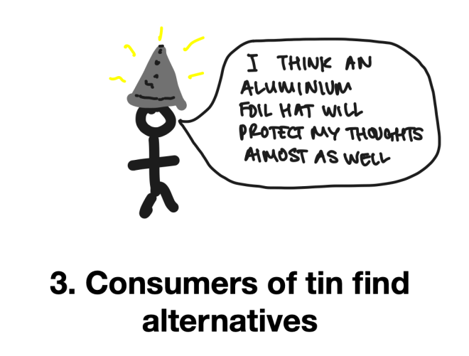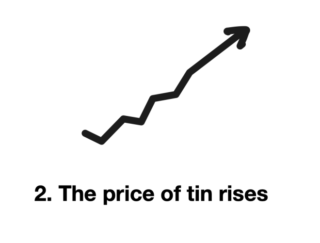 Or, as Hayek describes it, people who use tin can adjust their behaviour without ever knowing the details of some calamitous event at a far flung tin mine:
