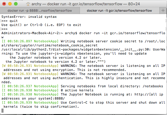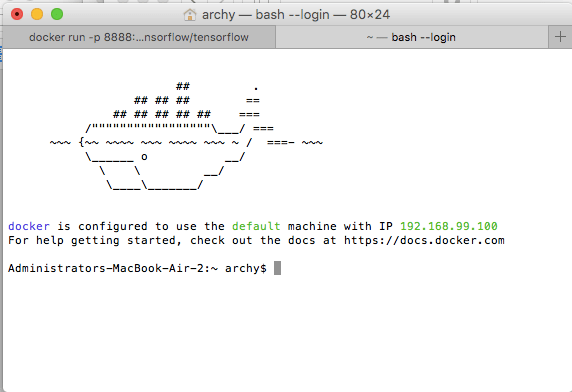 docker run -it -d -p 8888:8888 –name archyTF2 -v /Users/archy/tensorflow:/localfiles b.gcr.io/tensorflow/tensorflow