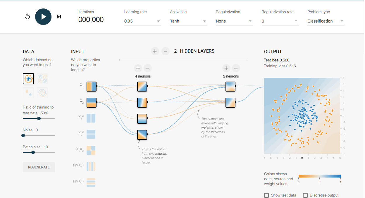 Google recently released a suite of Python tools for the technique du jour, deep learning, called Tensorflow. This was supplemented by a fantastic demo – which you can muck around with in your browser right now [screenshot above] – which inspired Zeb Kurth-Nelson and I to spend an evening setting up Tensorflow to work on my Mac. What follows is a brief account of our trials, tribulations, and solutions, in the hope that it is useful to anybody with a similar goal.