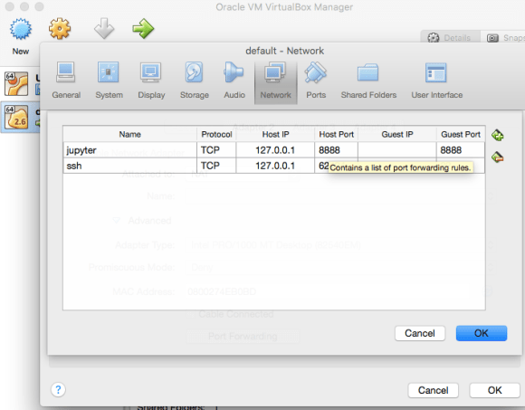 - We’re telling the computer to allow connections from the virtual machines port 8888 (the guest port) to my actual machines 8888 (host port)